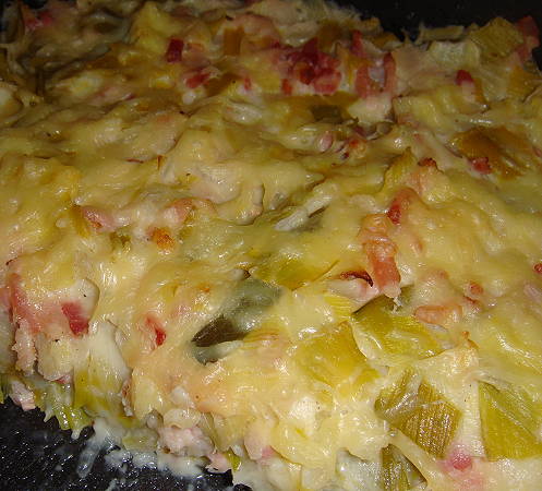 Gratin de poireaux aux lardons