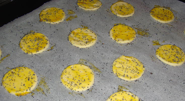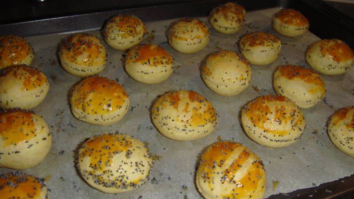 Faire des ronds de 6 ou 7 cm dans une pâte feuilletée prête à cuire, avec un pinceau dorer au jaune d'oeuf et saupoudrer sur le dessus des graines de sésame ou pavot. Mettre au four 10 mn à 180°. La pâte refroidie, on ouvre délicatement et on garnit. Surimi ou....