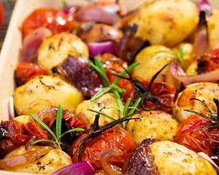 Pommes de terre et tomates cerise au four
